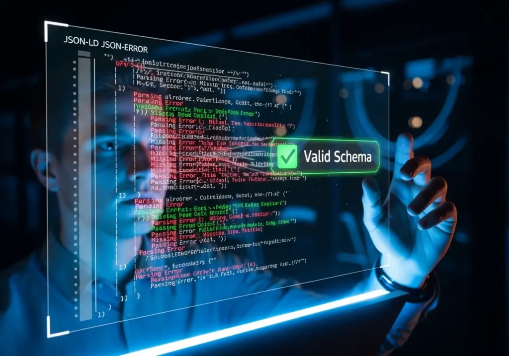 اینها بدترین نوع خطا هستند. Parsing error اسکیما به این معناست که گوگل‌بات حتی قادر به خواندن و «تجزیه» (Parse) کد JSON-LD شما نیست. این مثل این است که یک کتاب با صفحات به هم چسبیده به گوگل بدهید. گوگل بلافاصله آن را رها می‌کند.